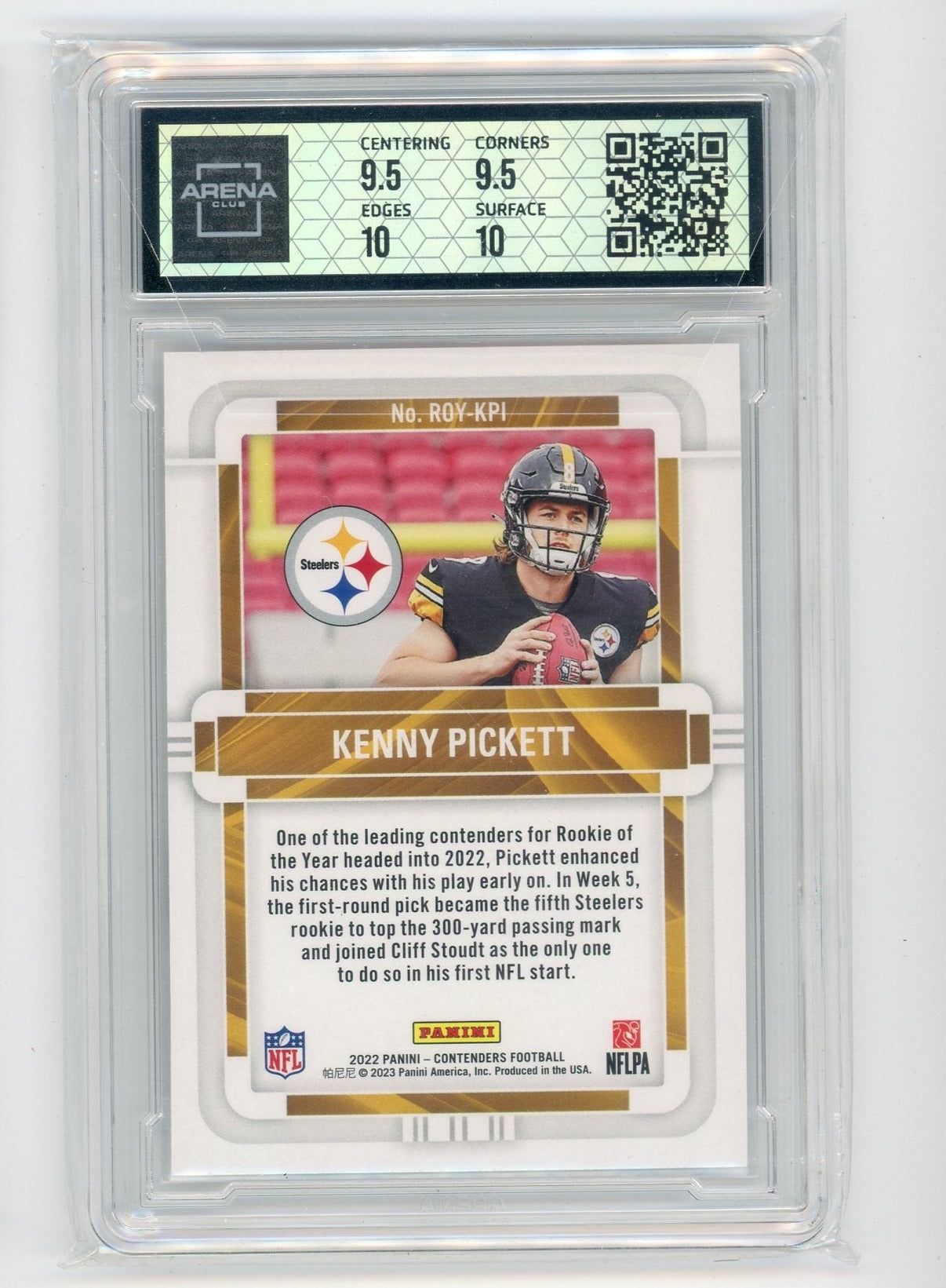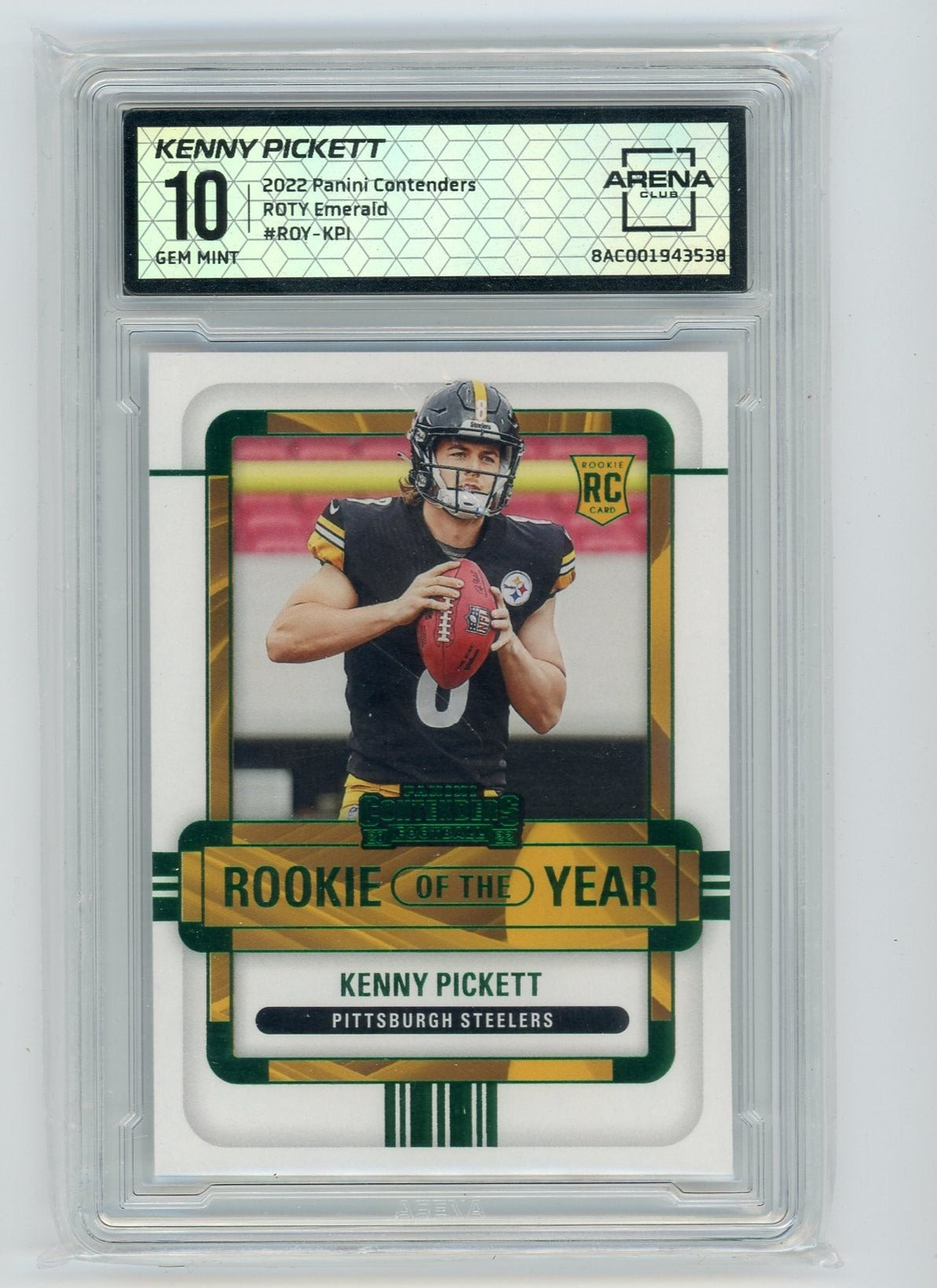 Kenny Pickett 2022 Panini Contenders Rookie of the Year emerald rookie card ARENA 10