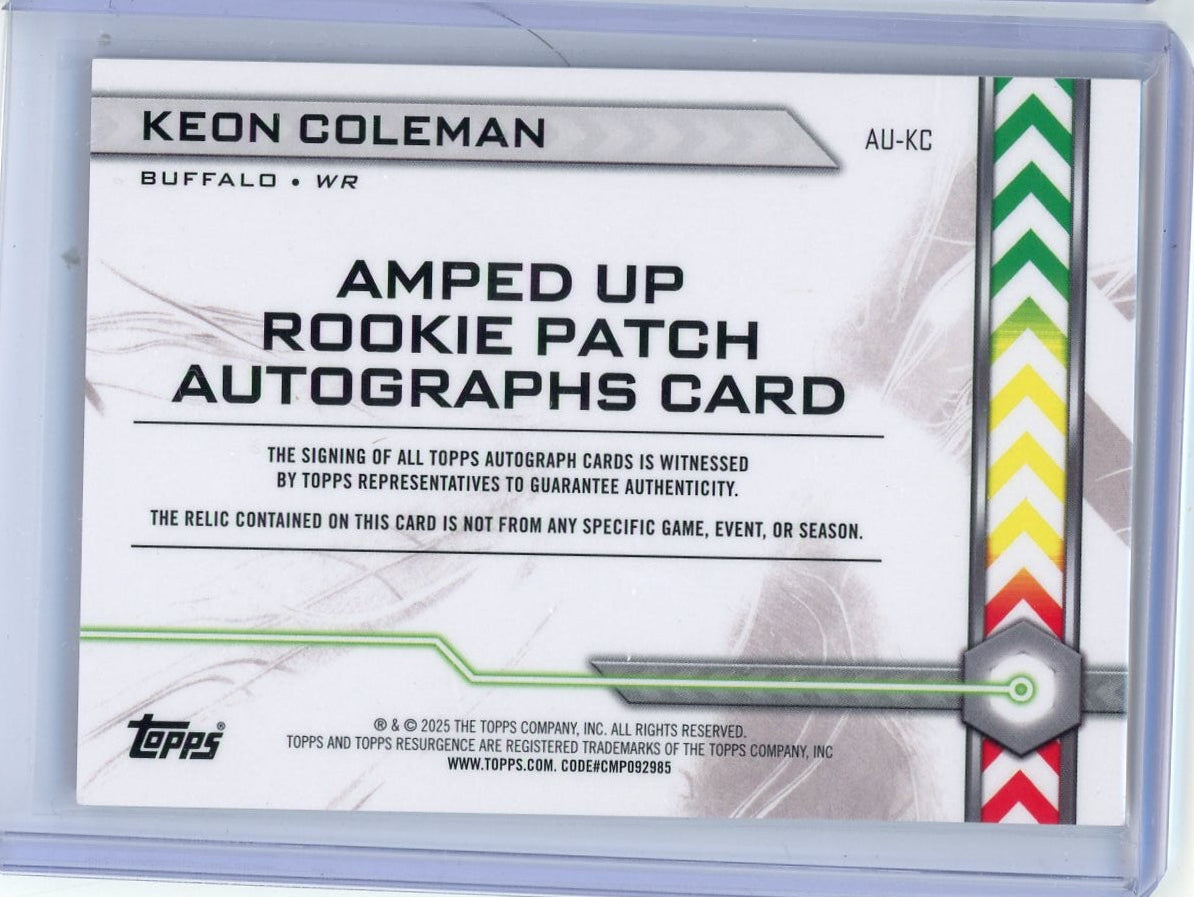 Keon Coleman 2025 Topps Resurgence Amped Up Rookie Patch Auto