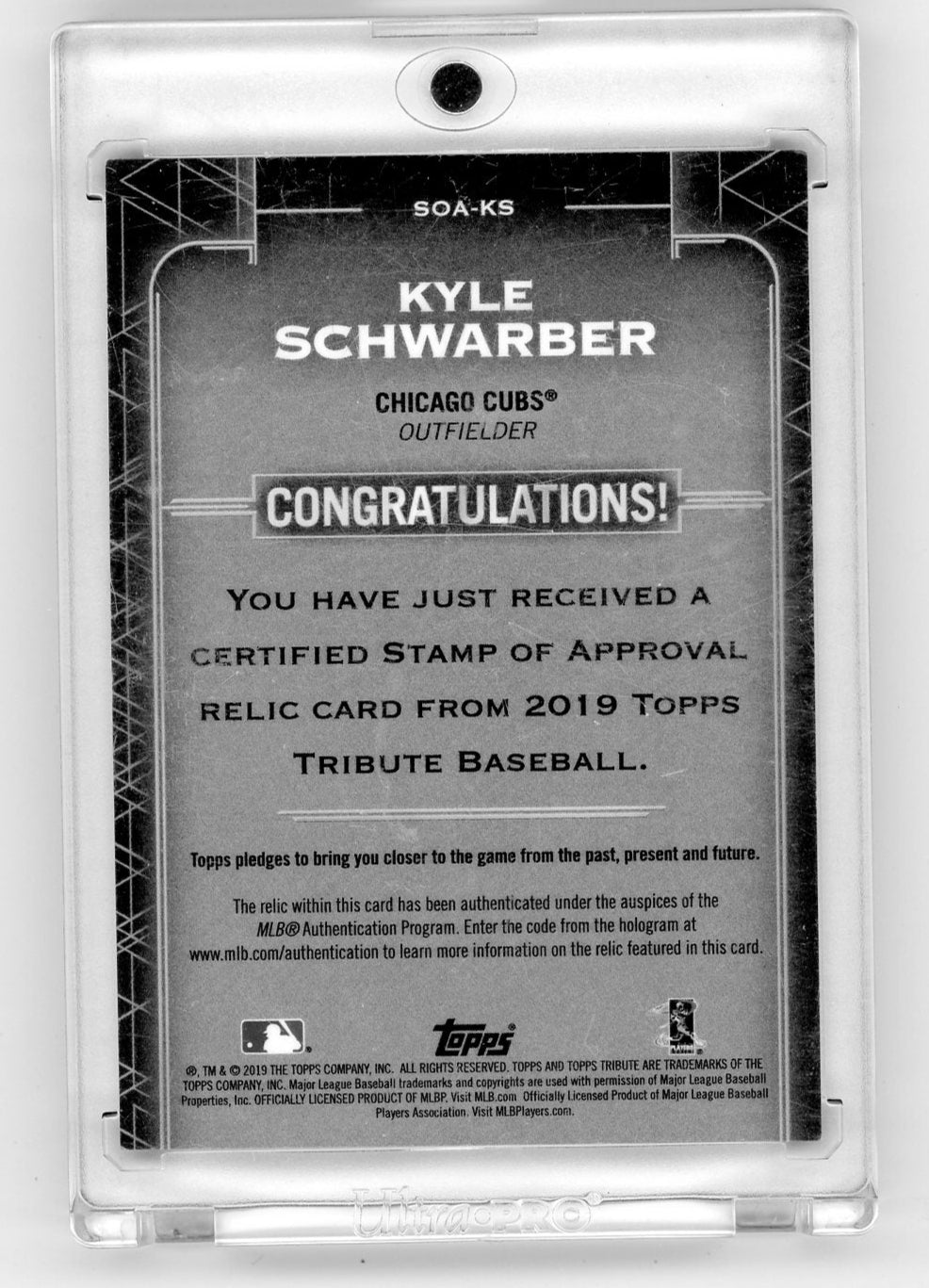 Kyle Schwarber 2019 Topps Tribute Stamp of Approval relic red #'d 08/10