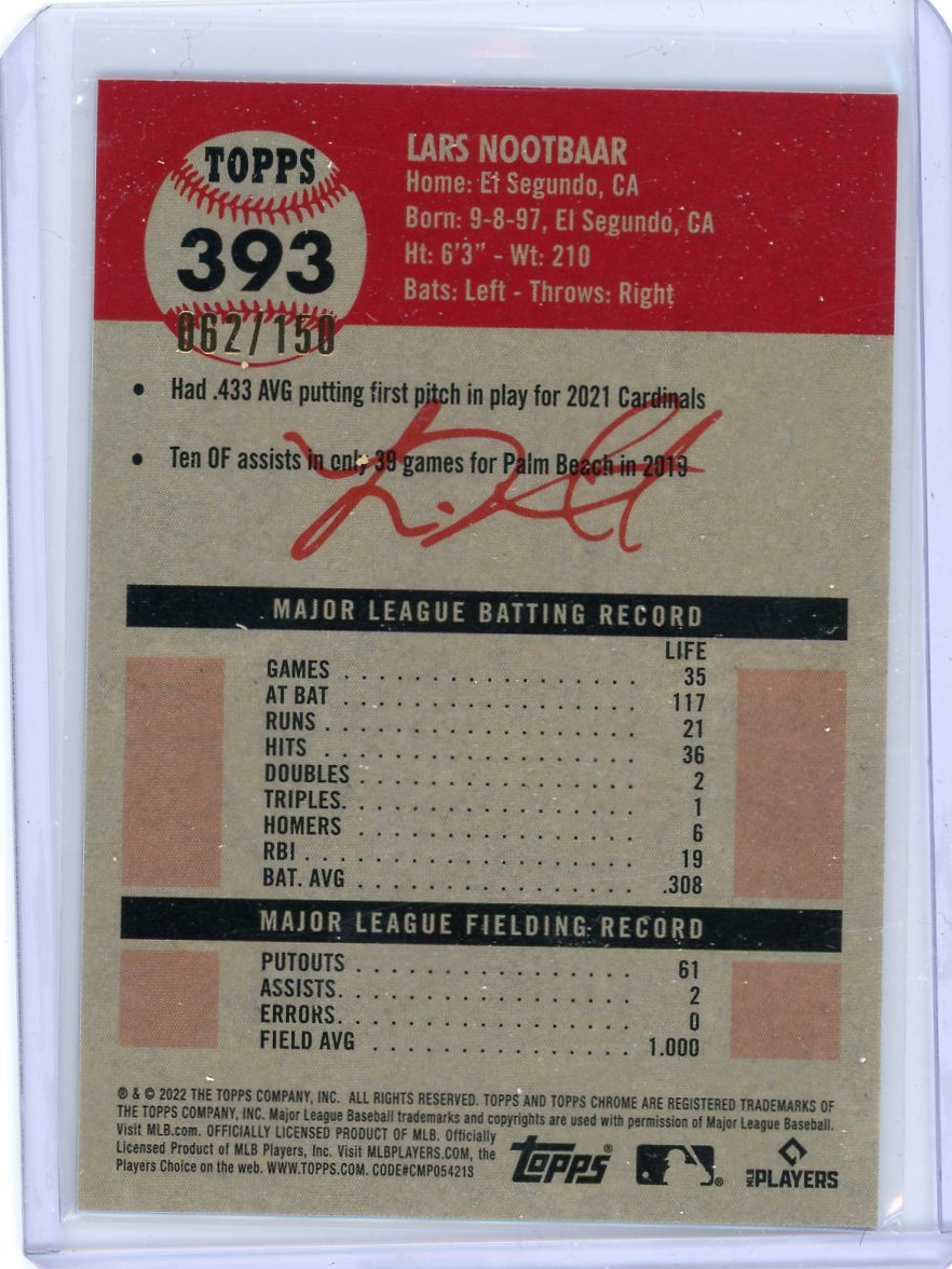 Lars Nootbaar 2022 Topps Chrome Platinum mini diamond rookie card #'d 062/150
