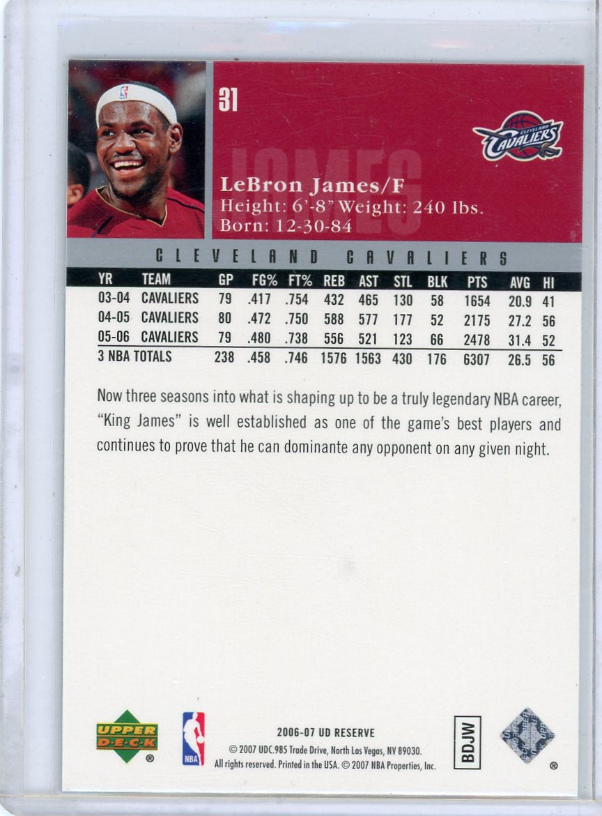 LeBron James 2007-08 Upper Deck UD Reserve foil #31