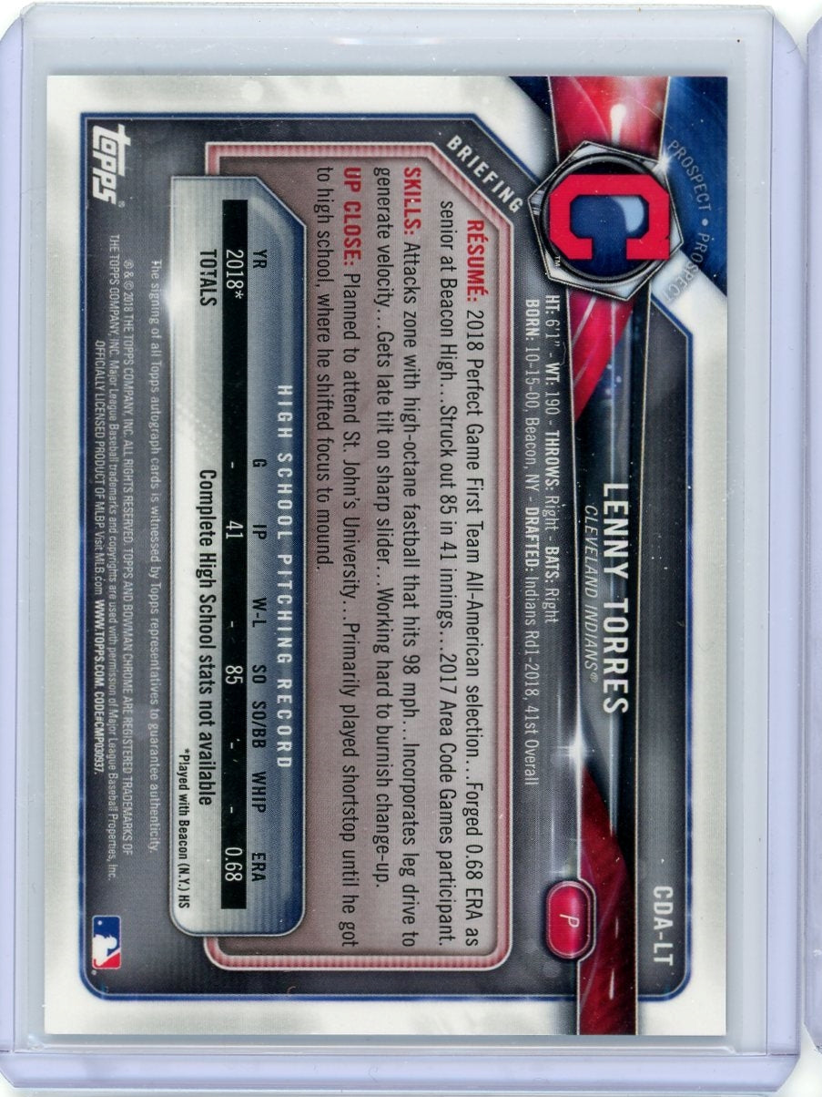 Lenny Torres 2018 1st Bowman Chrome Auto CDA-LT