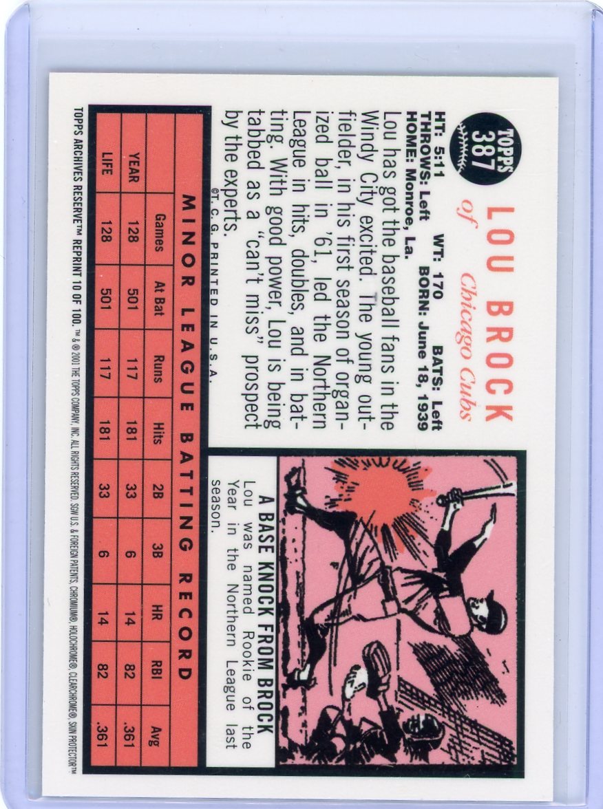 Lou Brock 1996 Topps Chrome 1962 Topps (RC reprint) refractor #387