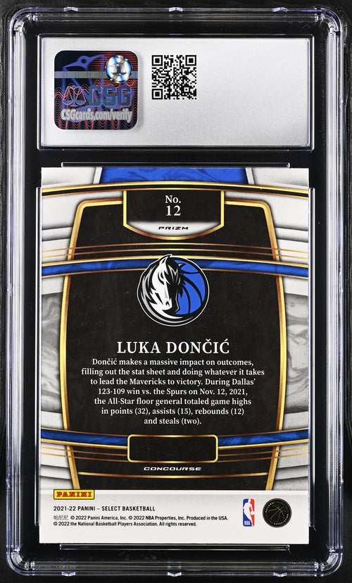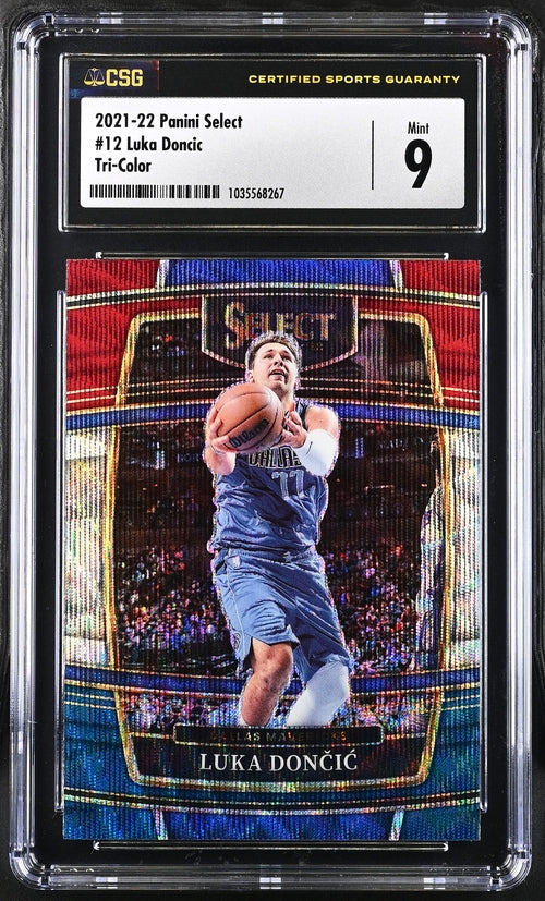 Luka Doncic 2021-22 Panini Select Tri-Color Prizm CSG 9