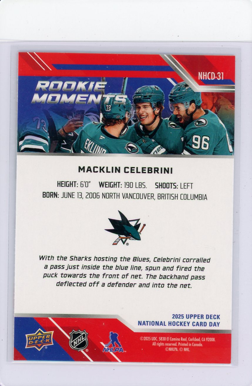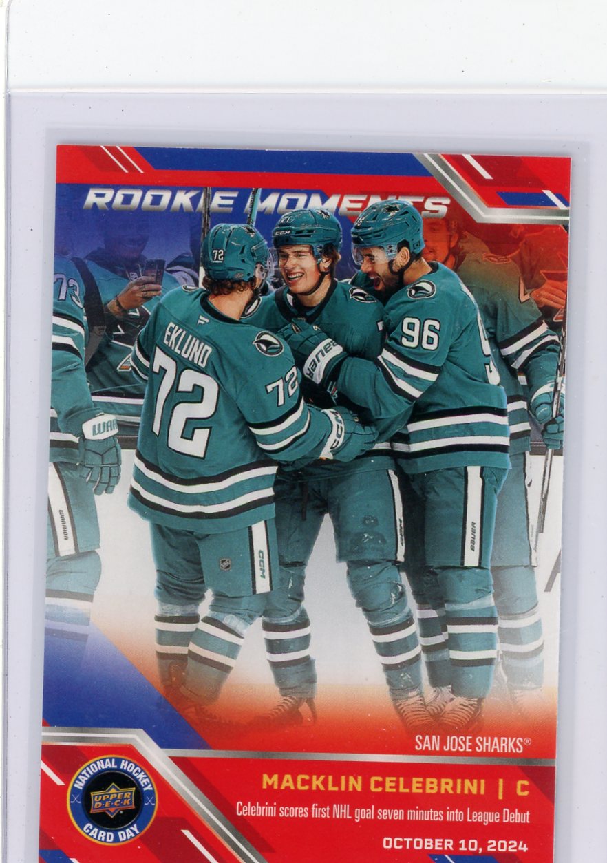 Macklin Celebrini 2024-25 Upper Deck National Hockey Card Day Rookie Moments