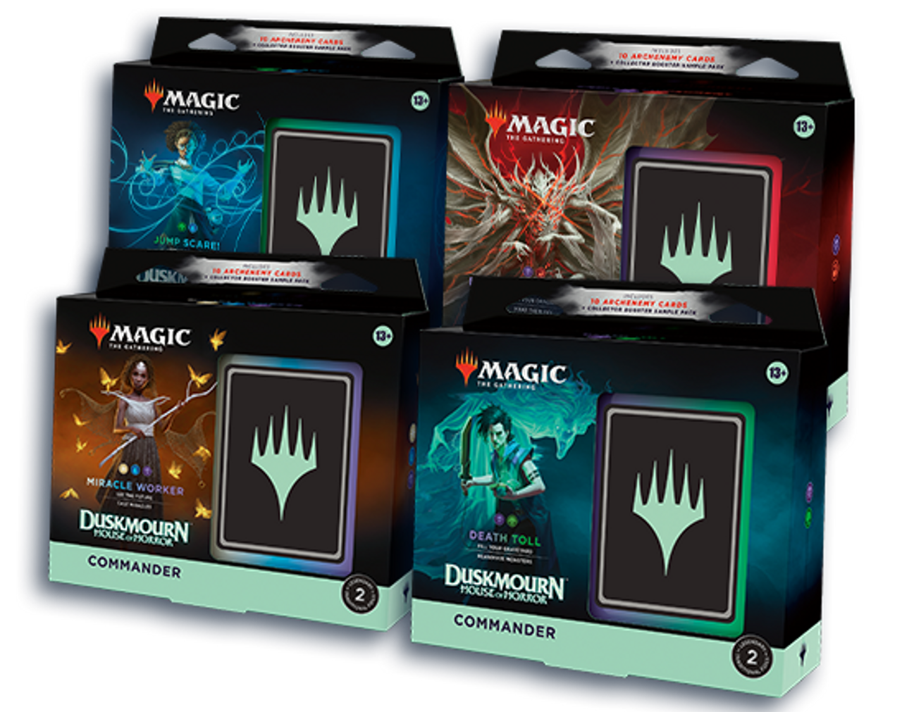 Each Duskmourn: House of Horror Commander Deck includes 10 Archenemy Scheme cards-a way for three players to join forces and take down a common enemy, taking screams to the next level.