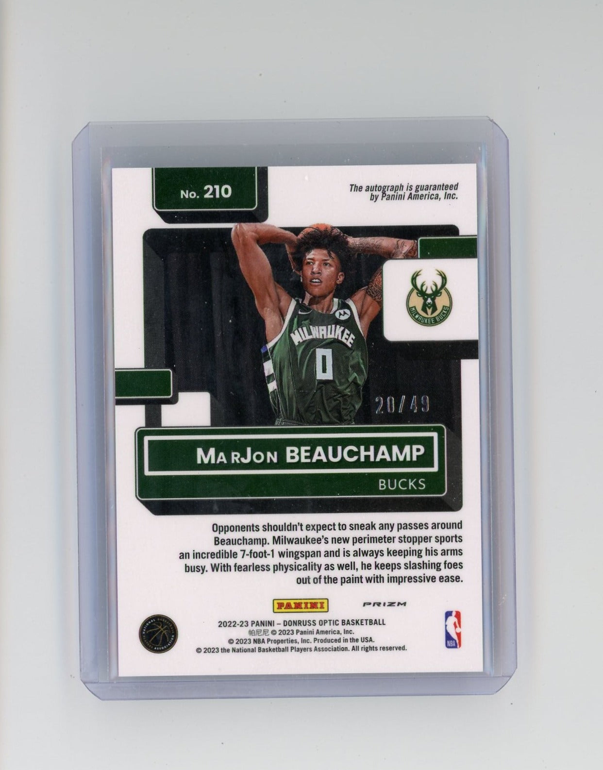 Marjon Beauchamp 2022-23 Panini Donruss Optic blue prizm autograph rookie card #'d 20/49