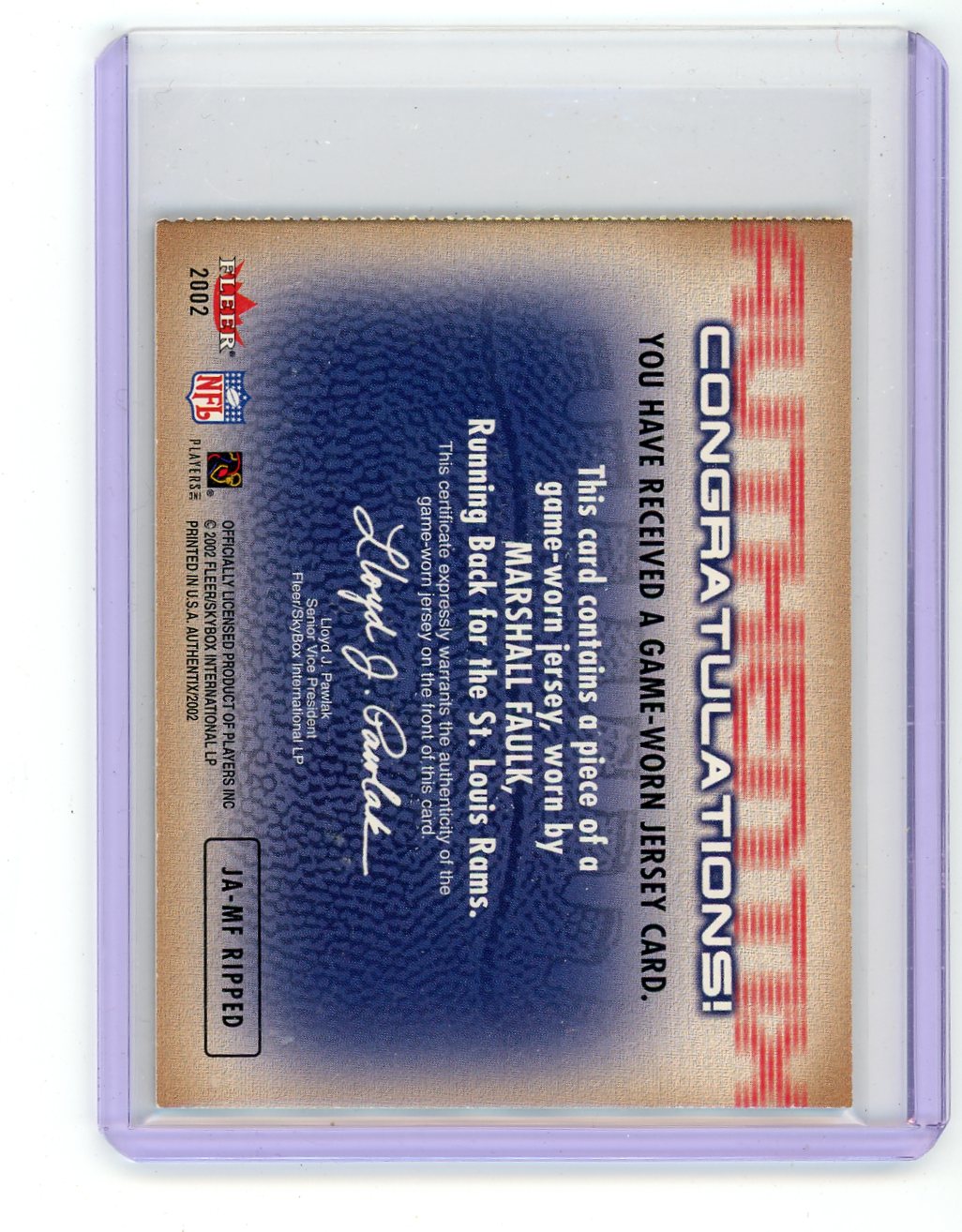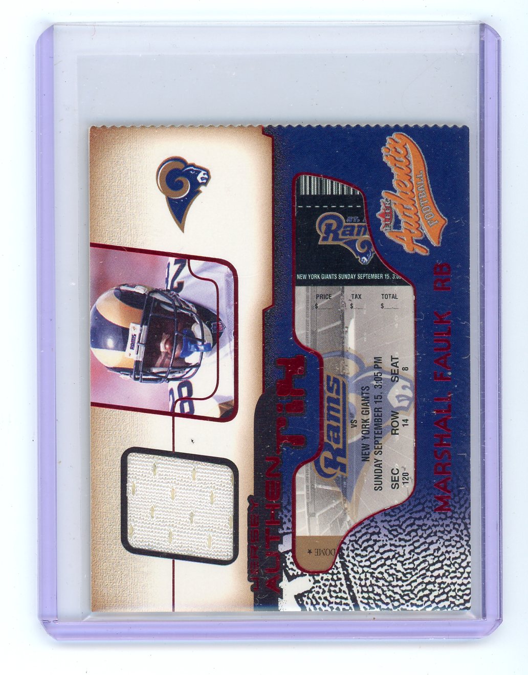 Marshall Faulk 2002 Fleer Authentic Football Jersey AuthenTix