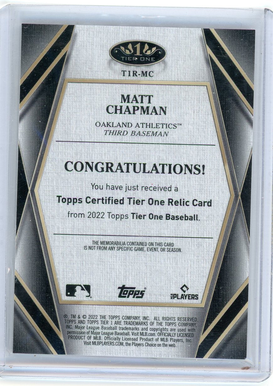Matt Chapman 2022 Topps Tier One Game-Used bat relic #'d 009/299