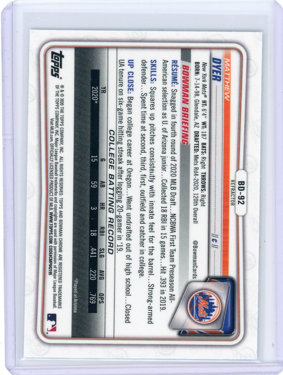 Matthew Dyer 2020 1st Bowman Draft Chrome refractor