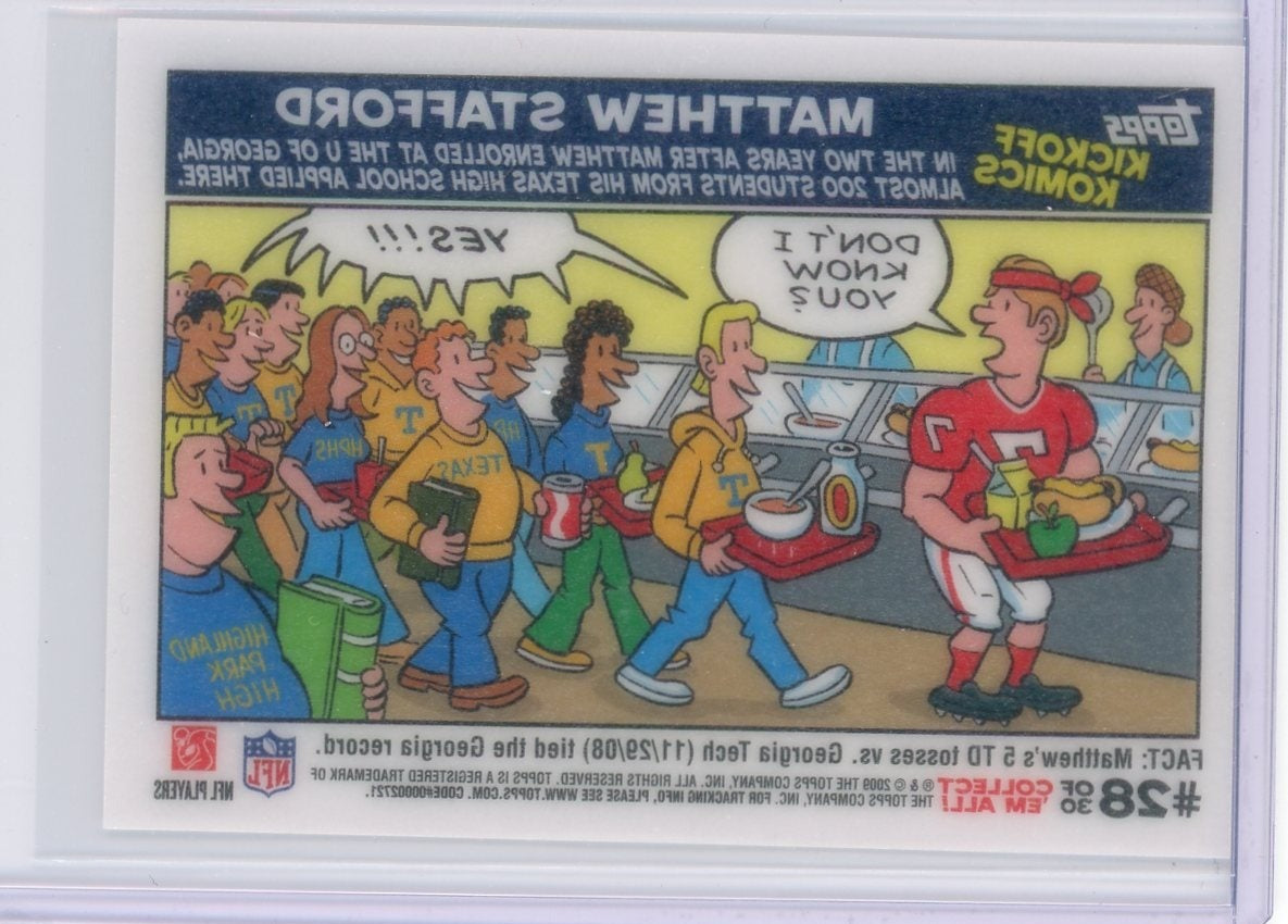 Matthew Stafford 2009 Topps NFL Kickoff Komics #28 of 30 rookie card