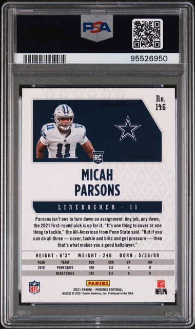 Micah Parsons 2021 Panini Phoenix Fire Burst PSA 9