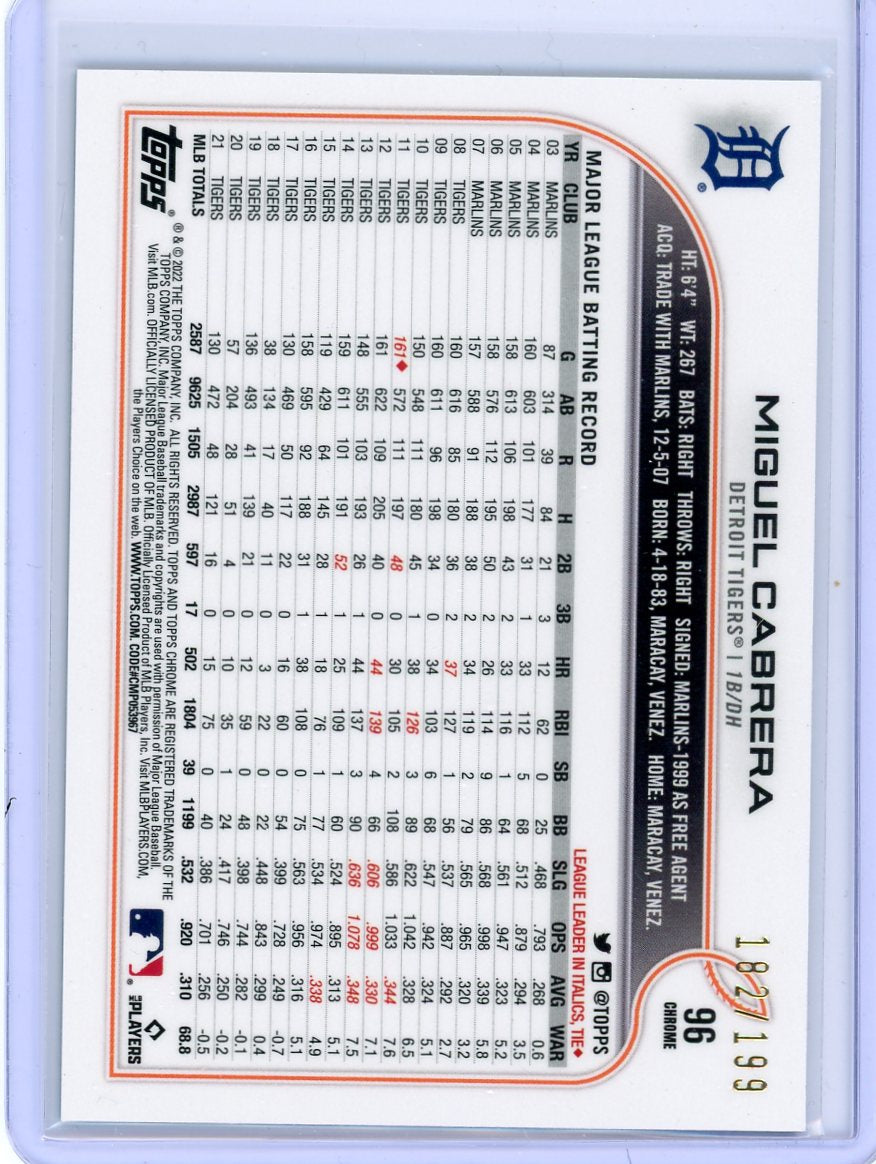 Miguel Cabrera 2022 Topps Chrome aqua wave refractor #'d 182/199