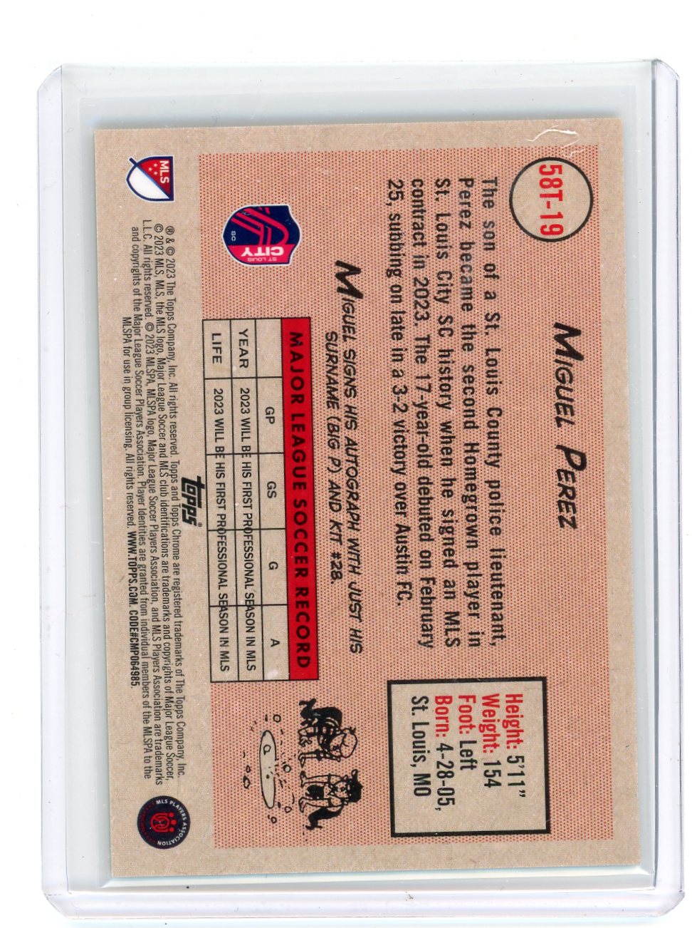 Miguel Perez 2023 Topps Chrome MLS 1958 Topps gold refractor rookie card #'d 23/50