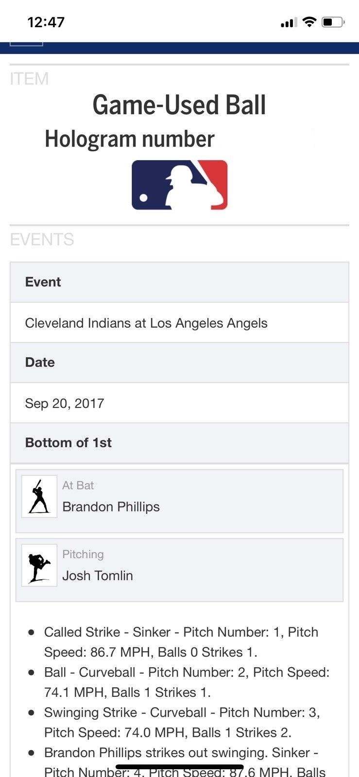 Mike Trout MLB Game Used Autographed Baseball 9/20/2017 Indians vs Angles