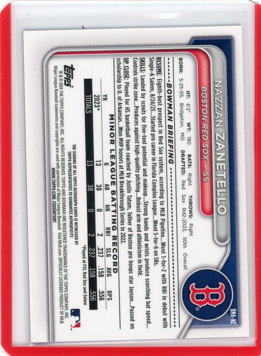 Nazzan Zanetello 2024 Bowman Chrome mojo/mega box autograph purple #'d 187/199