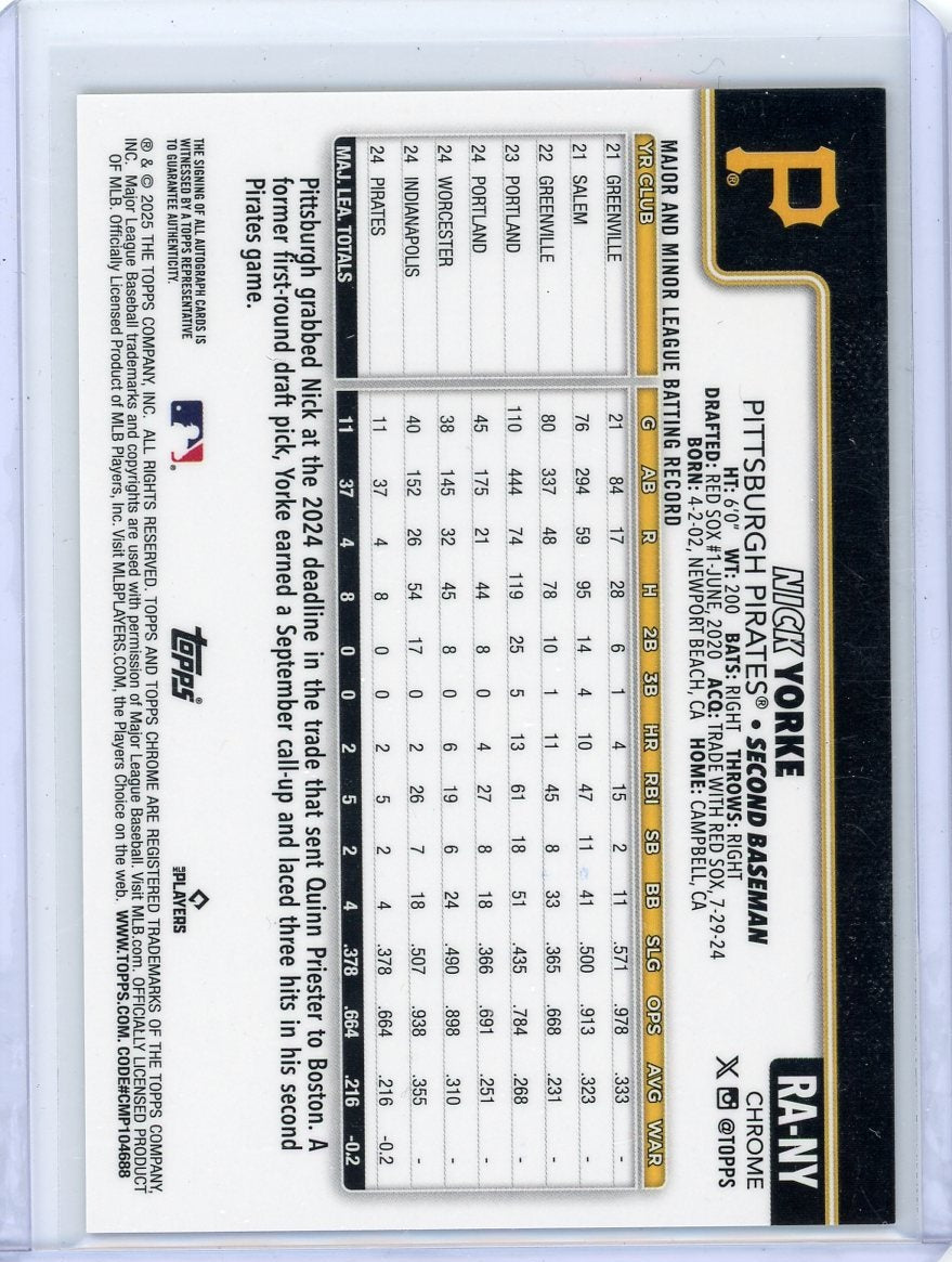 Nick Yorke 2025 Topps Chrome Update gold/orange lava lamp ref. autograph rookie card #'d 48/85