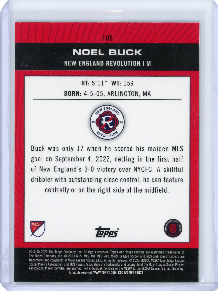 Noel Buck 2023 Topps Chrome MLS Pitch Prodigies aqua lava rookie card #'d 027/125