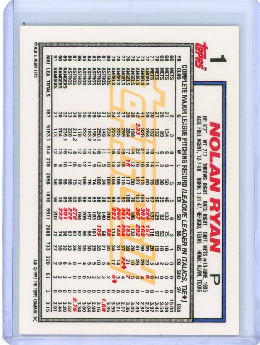 Nolan Ryan 1992 Topps Gold "Winner" Parallel #1