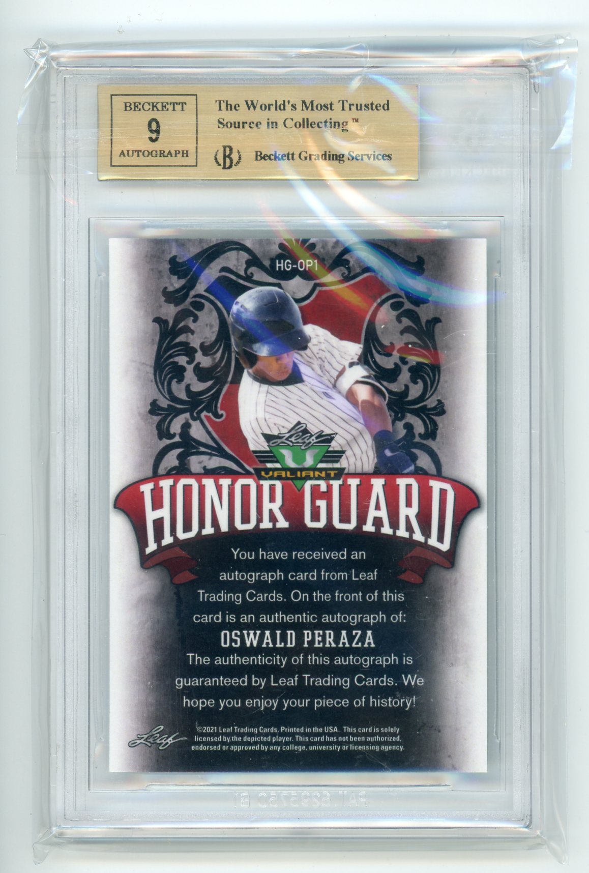Oswald Peraza 2021 Leaf Valiant Honor Guard Green Auto BGS 9.5