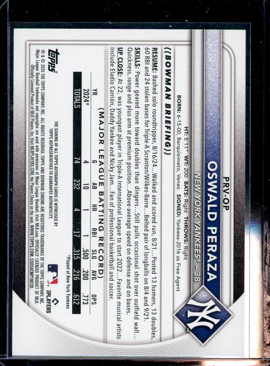 Oswald Peraza 2025 Bowman Auto Blue #'d 118/150