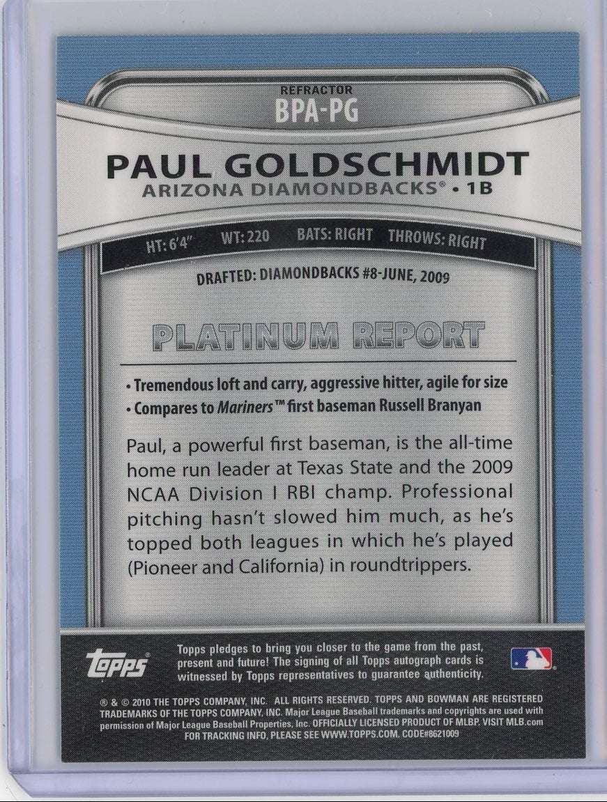 Paul Goldschmidt 2010 Bowman Platinum autograph refractor