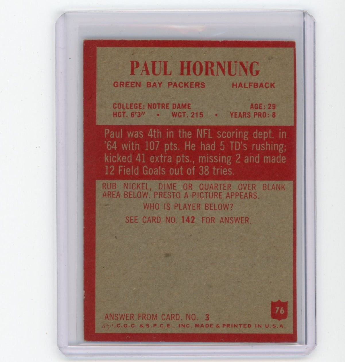 Paul Hornung 1965 Topps #76