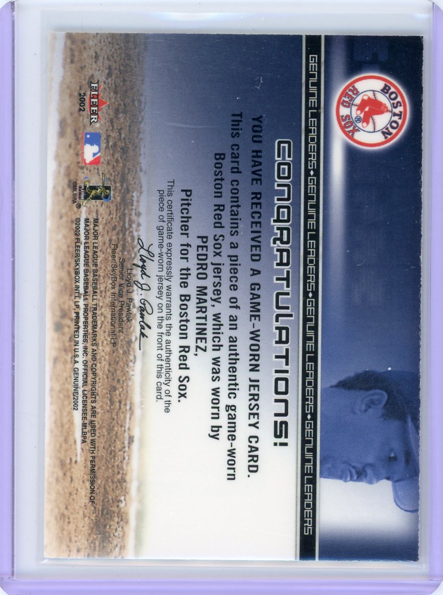 Pedro Martinez 2002 Fleer Genuine Leaders game-used jersey relic