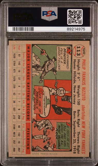Phil Rizzuto 1956 Topps Gray Back #113 PSA 7