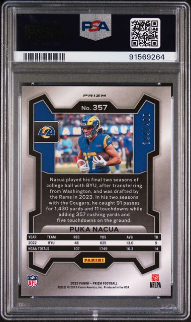 Puka Nacua 2023 Panini Silver Pandora Prizm #'d 344/400 PSA 9