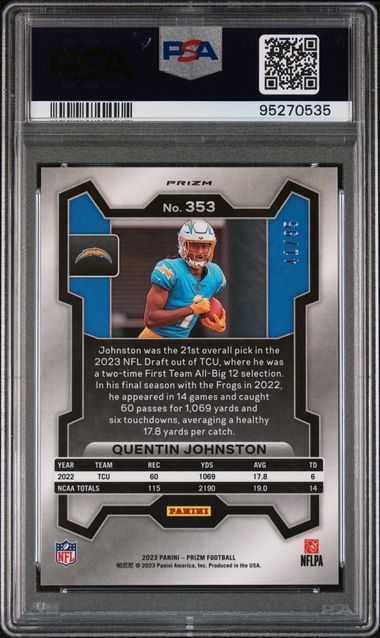 Quentin Johnston 2023 Panini Prizm No Huddle Blue prizm rookie card #'d 41/95 PSA 9