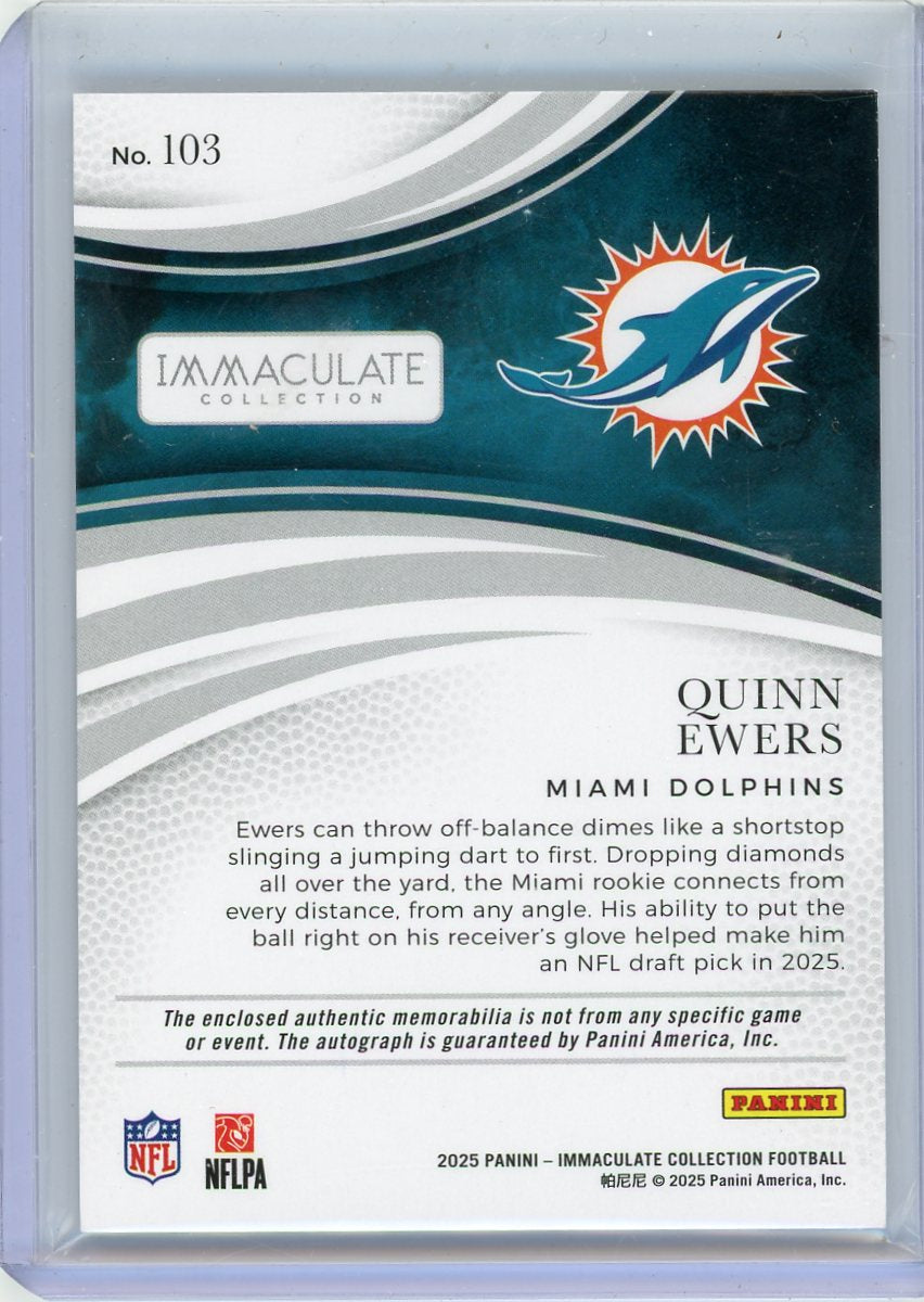 Quinn Ewers 2025 Panini Immaculate Collection Rookie Patch Autograph #'d 43/99