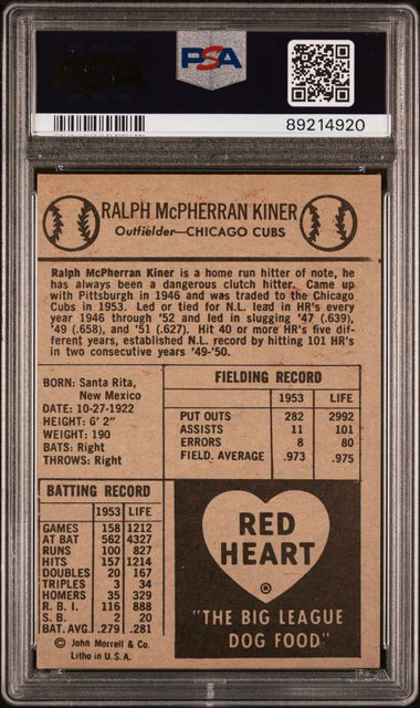 Ralph Kiner 1954 Red Heart PSA 6