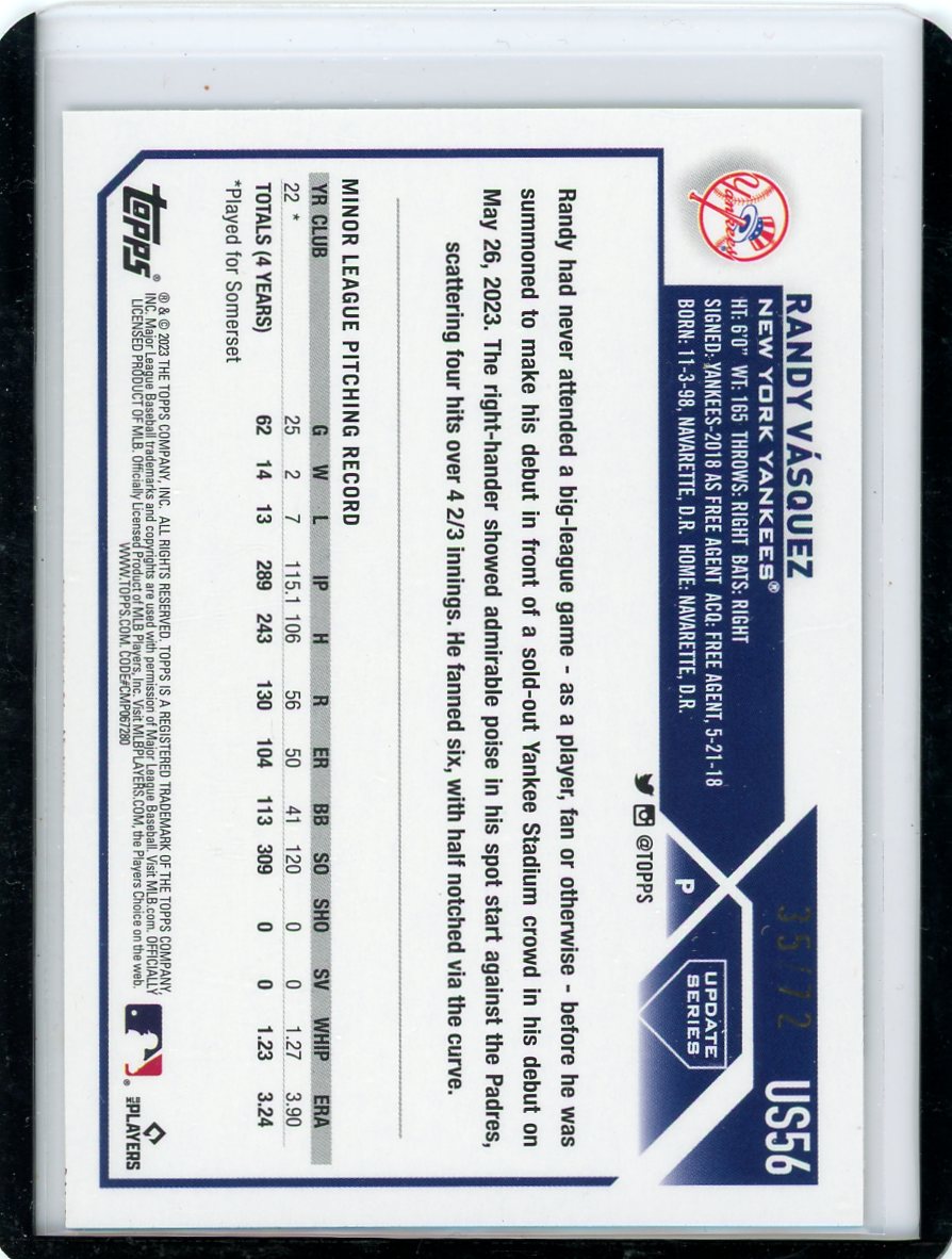Randy Vasquez 2023 Topps rookie card black #'d 35/72