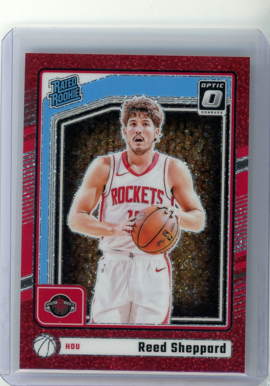 Reed Sheppard 2024-25 Panini Donruss Optic red glitter prizm rookie card #'d 06/75