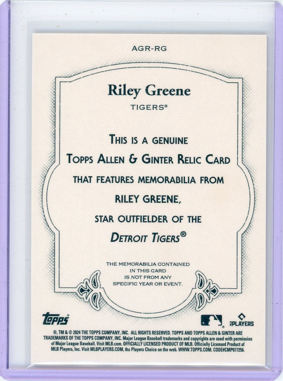 Riley Greene 2024 Topps Allen & Ginter game-used jersey relic