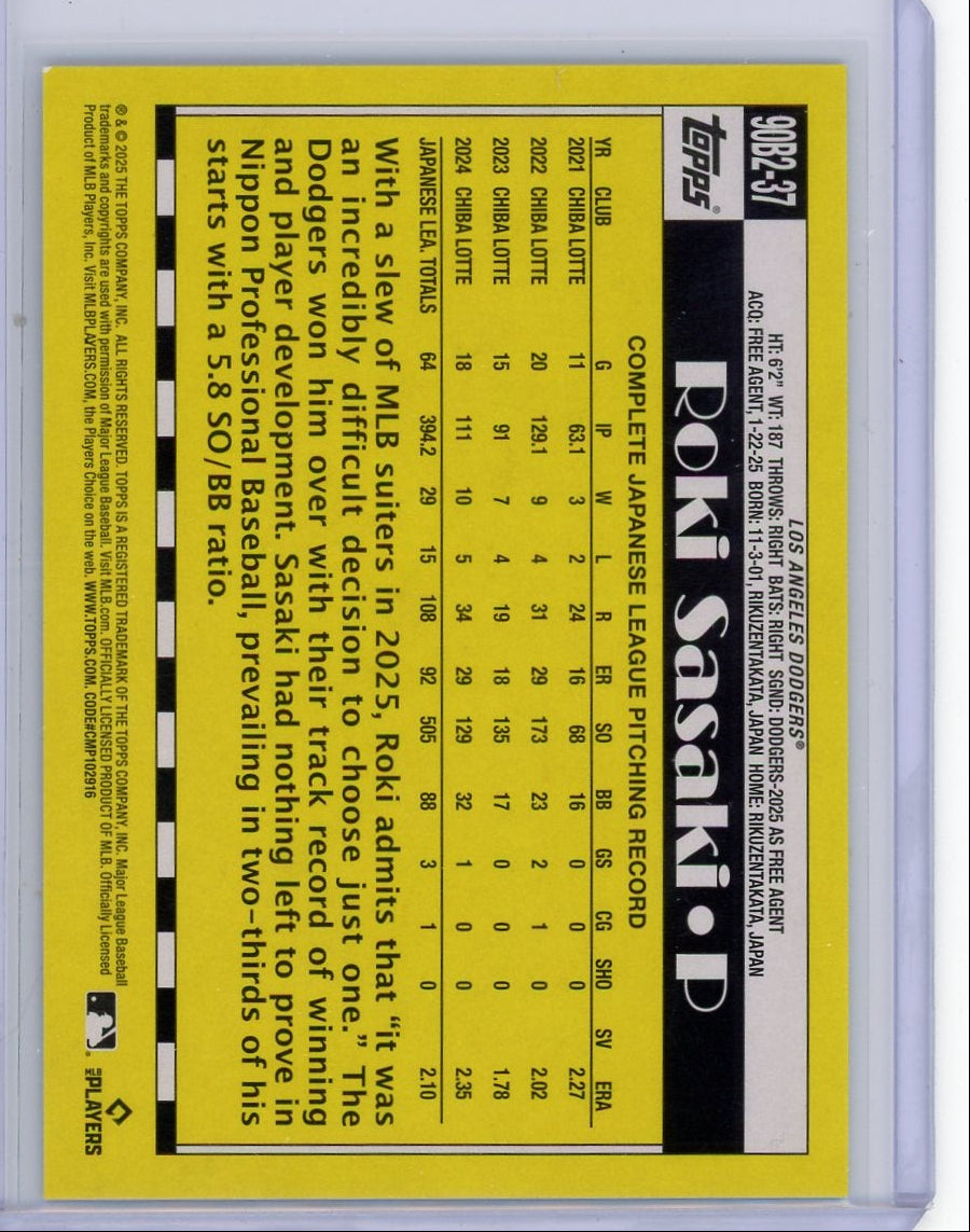 Roki Sasaki 2025 Topps 35th Anniversary Green Foil Rookie #'d 07/99