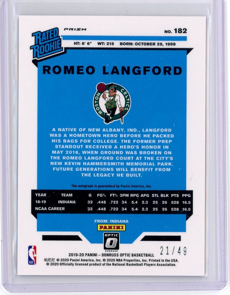 Romeo Langford 2019-20 Panini Donruss Optic Purple Stars FOTL rookie autograph #"d 21/49