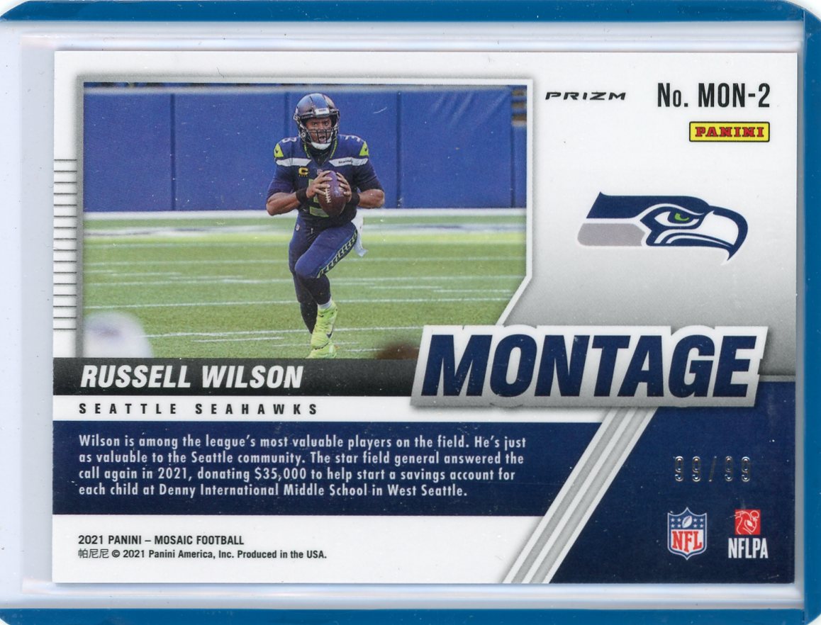 Russell Wilson 2021 Panini Mosaic Montage blue mosaic prizm #'d 99/99