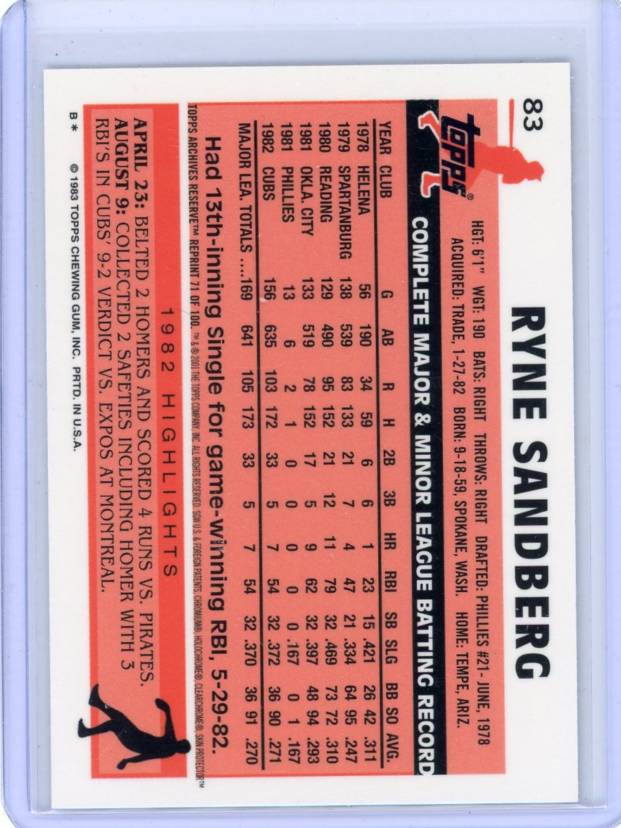 Ryne Sandberg 1996 Topps Chrome 1983 Topps (RC reprint) refractor #83