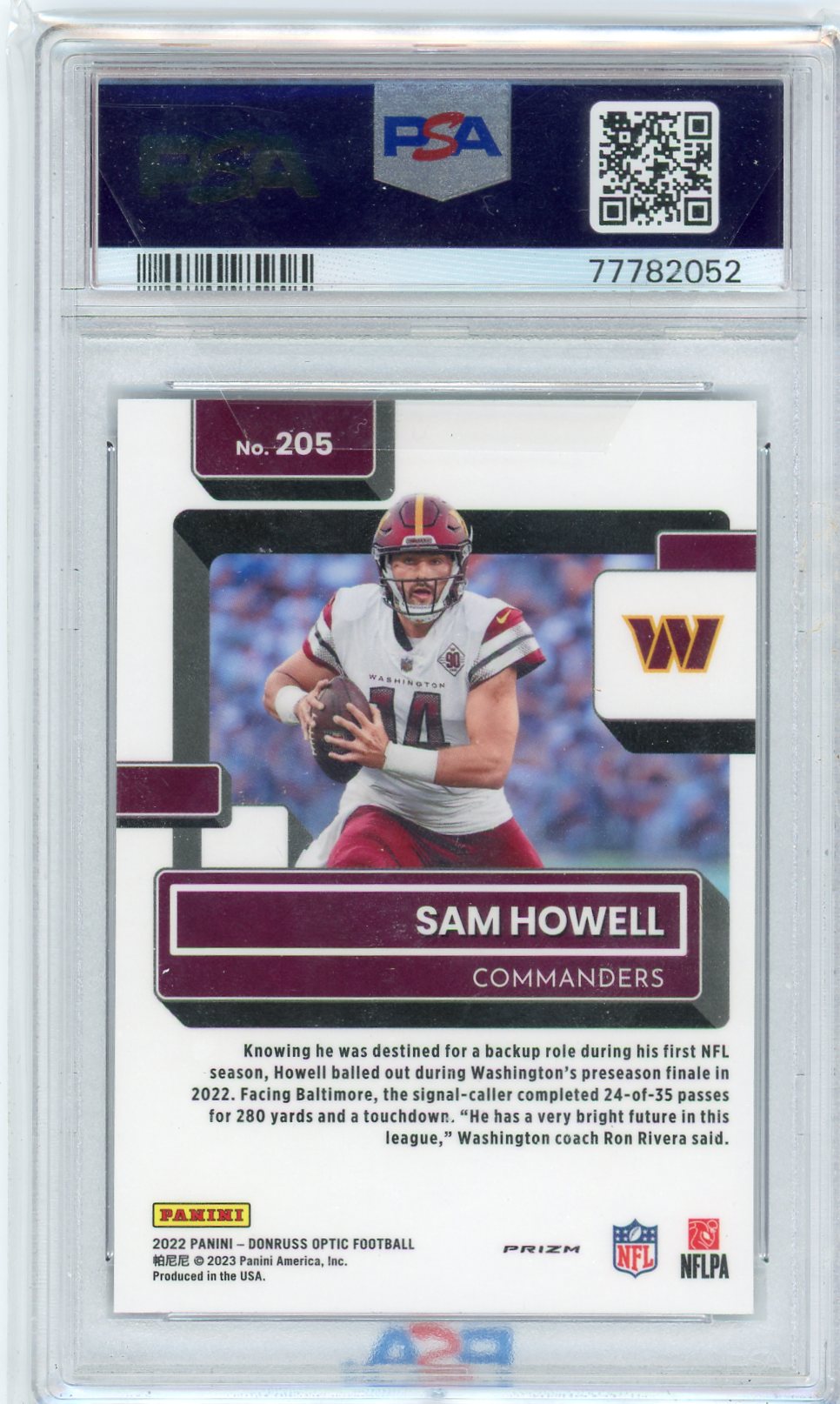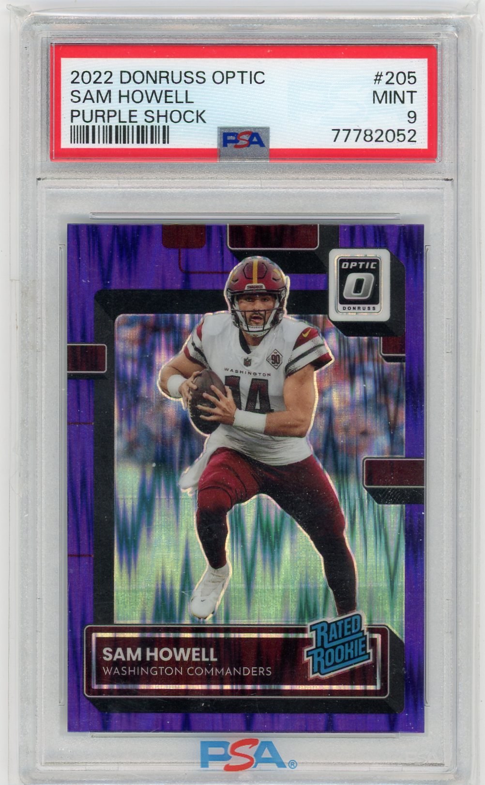Sam Howell 2022 Panini Donruss Optic purple shock rookie card PSA 9