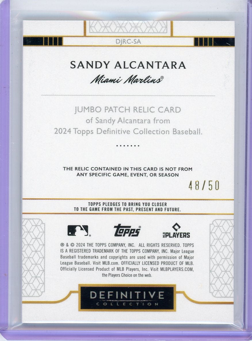 Sandy Alcantara 2024 Topps Definitive Collection Jumbo Patch Relic #'d 48/50