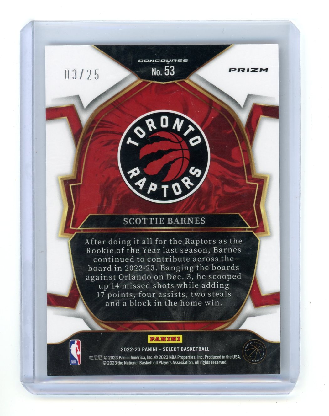 Scottie Barnes 2022-23 Panini Select Tie-Dye Prizms #'d 03/25