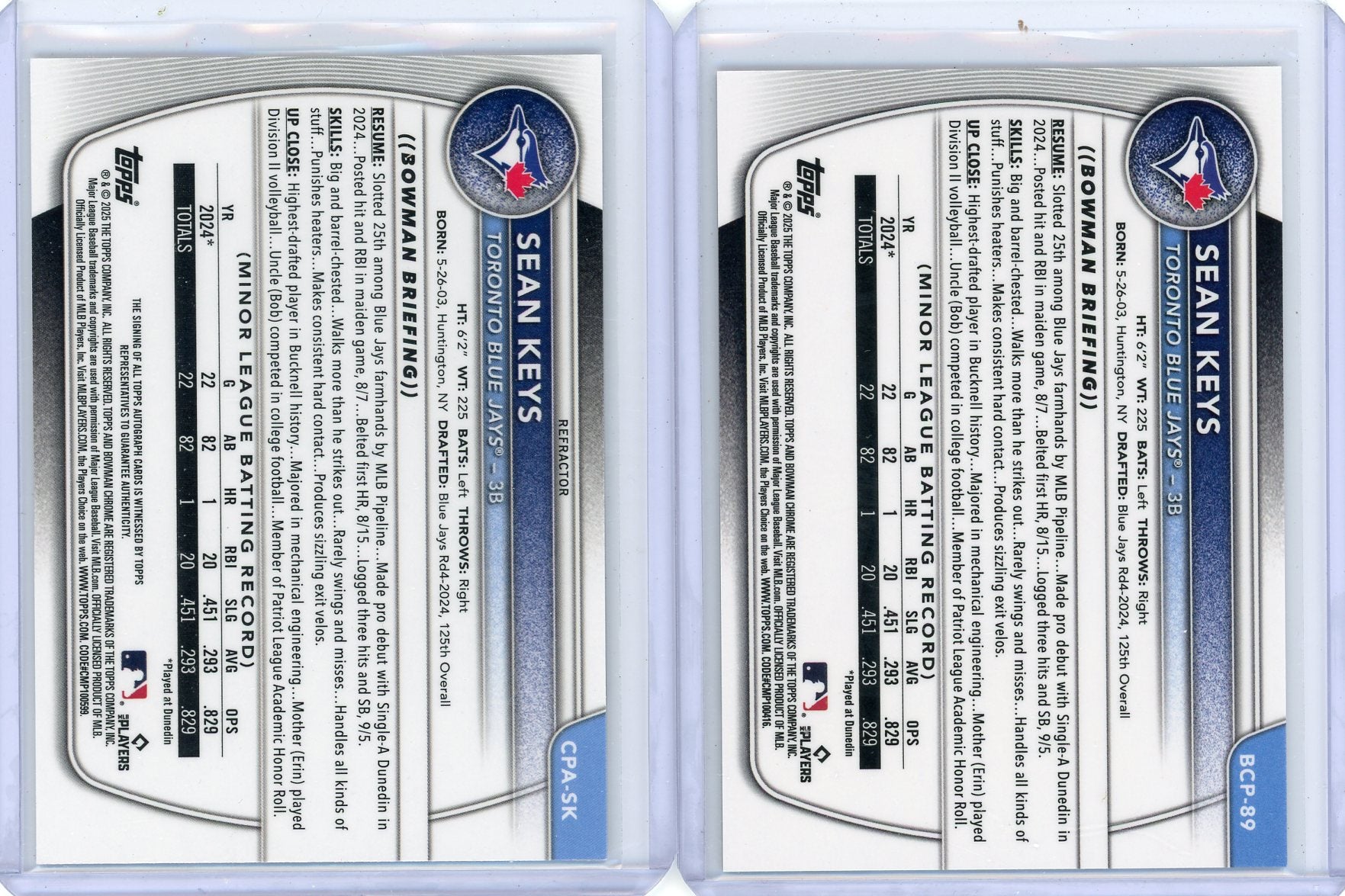 Sean Keys 2025 1st Bowman Chrome 2-card lot /50 gold + ref /499 auto
