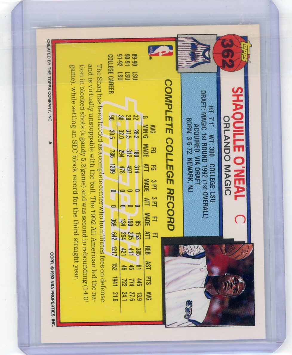 Shaquille O'Neal 1993 Topps Gold rookie card