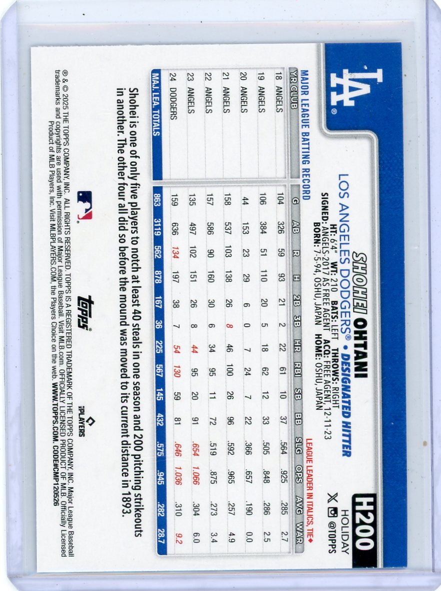 Shohei Ohtani 2025 Topps Holiday Blue Refractor Glitter Parallel