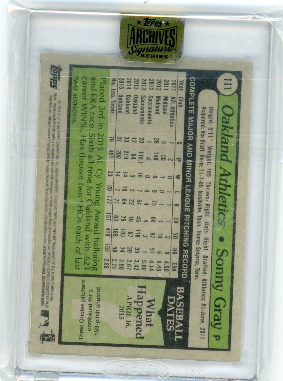 Sonny Gray 2017 Topps Signature Series Auto #'d 06/14