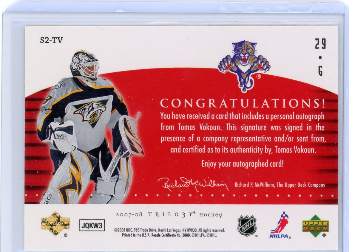 Tomas Vokoun 2007-08 Upper Deck Trilogy Script autograph