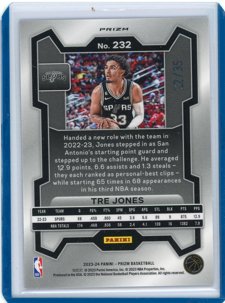 Tre Jones 2023 Panini Prizm blue shimmer prizm #'d 22/35
