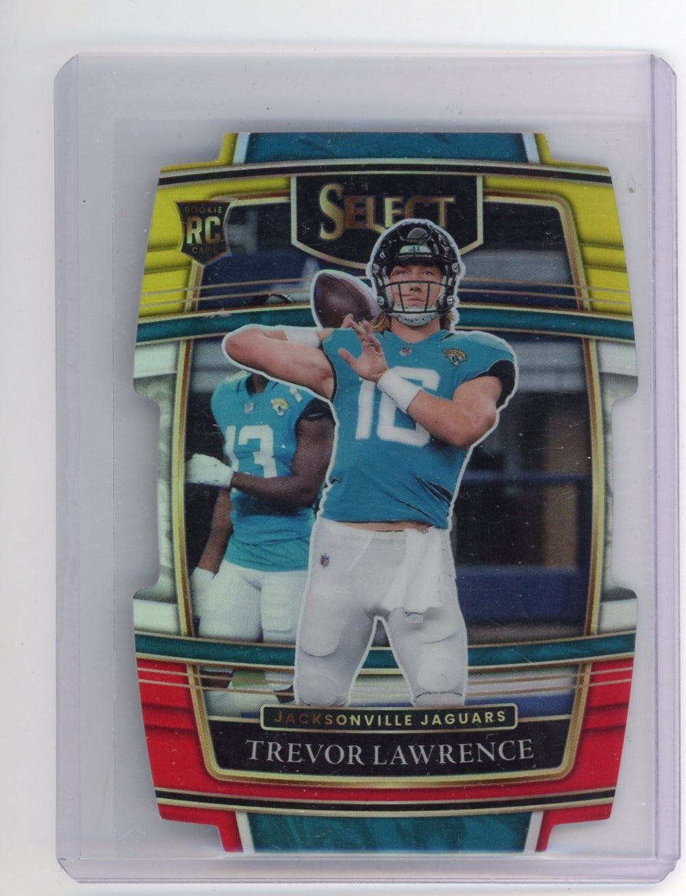 Trevor Lawrence 2021 Panini Select tri-color prizm die-cut rookie card